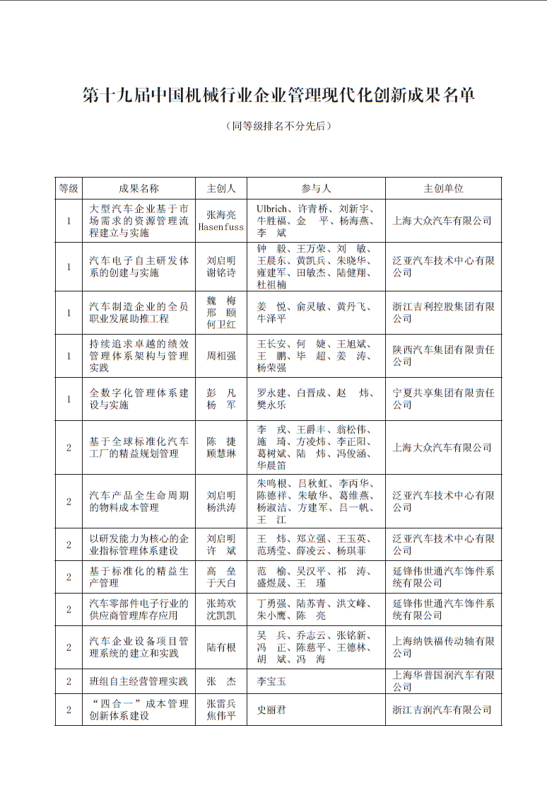 關(guān)于發(fā)布和推廣第十九屆中國機械行業(yè)企業(yè)管理現(xiàn)代化成果的通知