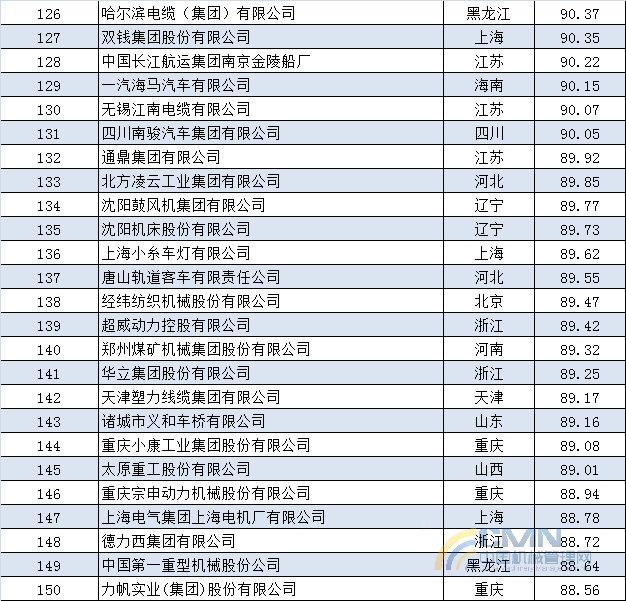 2013年中國機(jī)械500強(qiáng)排名