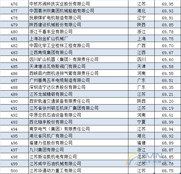 2013年中國機(jī)械500強(qiáng)排名