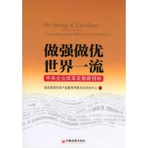 國務(wù)院國有資產(chǎn)監(jiān)督管理委員會(huì)研究中心緊密圍繞國資委的中心工作,組織人員專門就中央企業(yè)改革發(fā)展的“一大目標(biāo)”,“五大戰(zhàn)略”,“三大保障”內(nèi)容進(jìn)一步細(xì)化和擴(kuò)展。出版《做強(qiáng)做優(yōu),世界一流:中央企業(yè)改革發(fā)展新目標(biāo)》,旨在對(duì)中央企業(yè)改革發(fā)展目標(biāo)和戰(zhàn)略部署進(jìn)行梳理和前瞻性的闡述,就培育一批具有國際競(jìng)爭力的世界一流企業(yè)應(yīng)具備的基本要素、實(shí)施戰(zhàn)略和創(chuàng)新探索等重要內(nèi)容提出了政策性、操作性和建設(shè)性的理論思考和改革設(shè)想。
