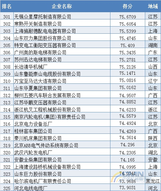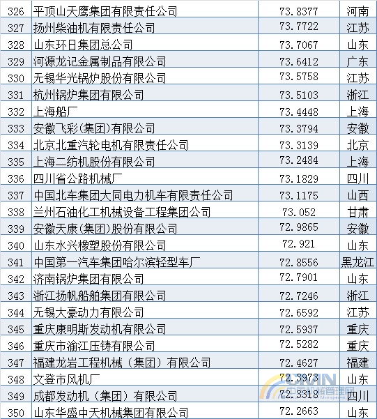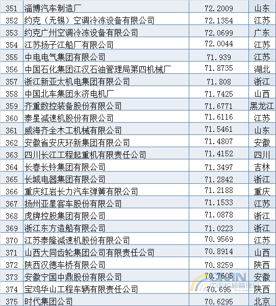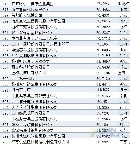2005年中國(guó)機(jī)械500強(qiáng)排名(301-400)
