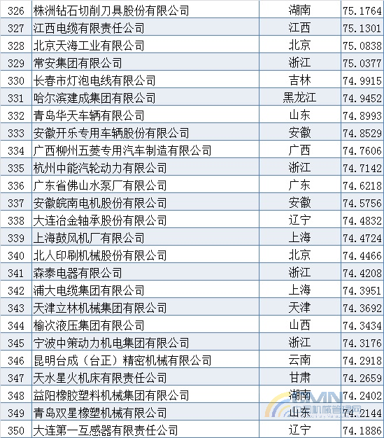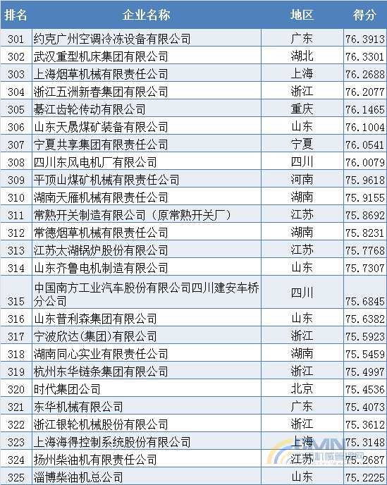 2009年中國機械500強排名(301-400)
