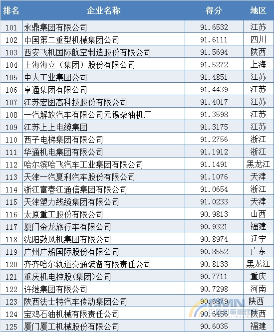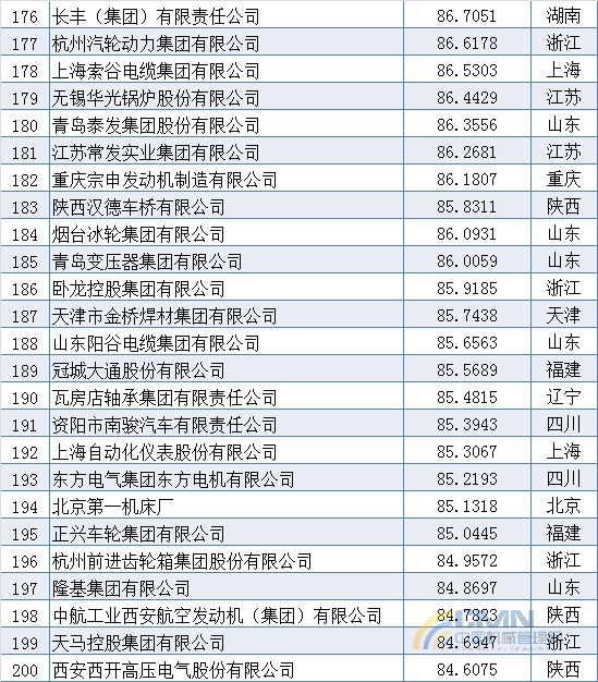 2010年中國機(jī)械500強(qiáng)排名(101-200)