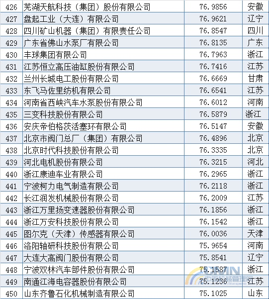 2011年中國機(jī)械500強(qiáng)排名(401-500)