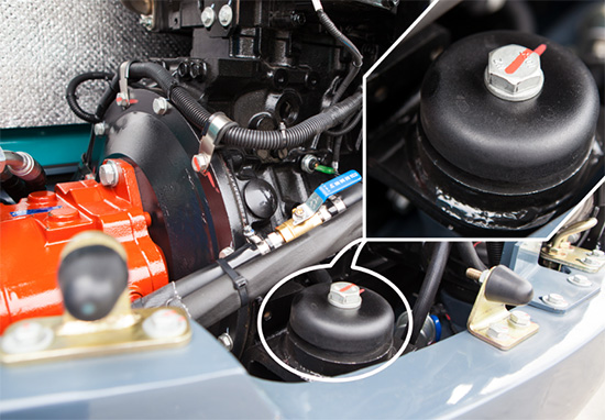SWE70E升級新減震器,司機室減震器采用更大直徑減震器,提升可靠性,發(fā)動機減震器優(yōu)化減震形式,增加限位功能,保證安全性;振動加速度和振幅測試值已達(dá)行業(yè)前列水平,優(yōu)化工作環(huán)境。