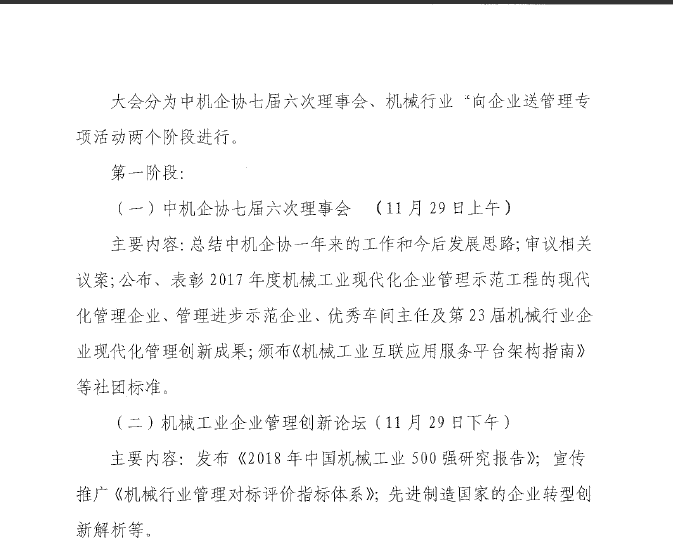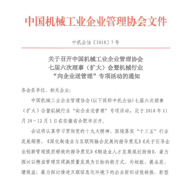 中機(jī)企協(xié)七屆六次理事(擴(kuò)大)會(huì)暨機(jī)械行業(yè)“向企業(yè)送管理”專項(xiàng)活動(dòng)通知