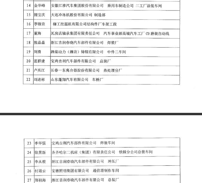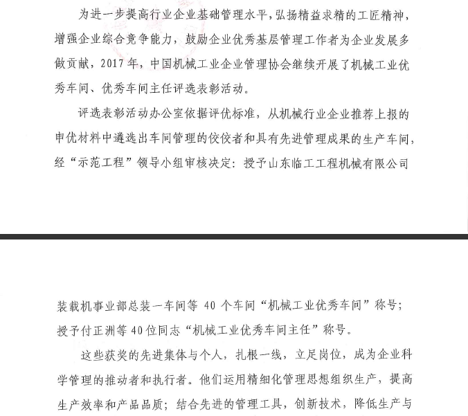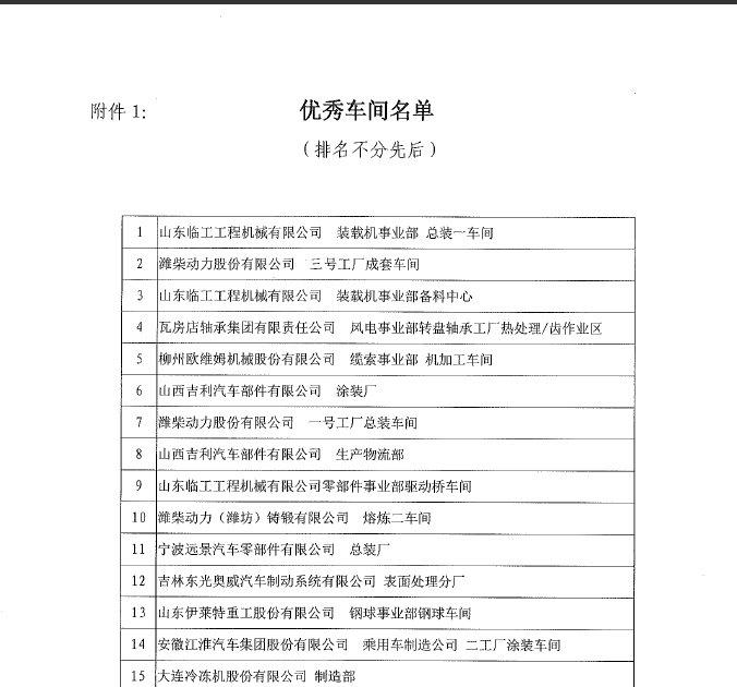 關(guān)于表彰2017年機(jī)械工業(yè)優(yōu)秀車間、優(yōu)秀車間主任的決定