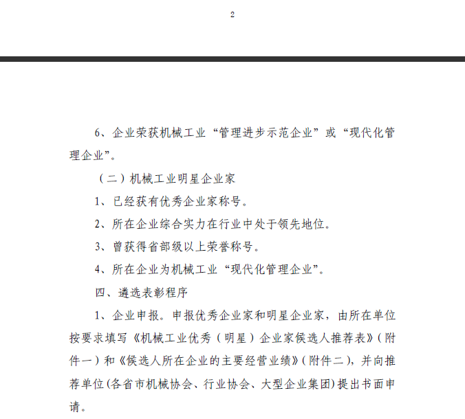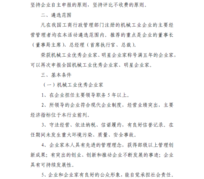 關(guān)于做好2017~2018年度機(jī)械工業(yè)優(yōu)秀企業(yè)家、明星企業(yè)家遴選表彰工作的通知