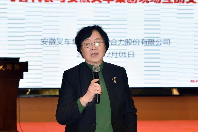 中機(jī)企協(xié)常務(wù)副理事長李玲在機(jī)械行業(yè)“向企業(yè)送管理” 現(xiàn)場交流活動(dòng)--安徽叉車集團(tuán)互動(dòng)交流會上發(fā)言