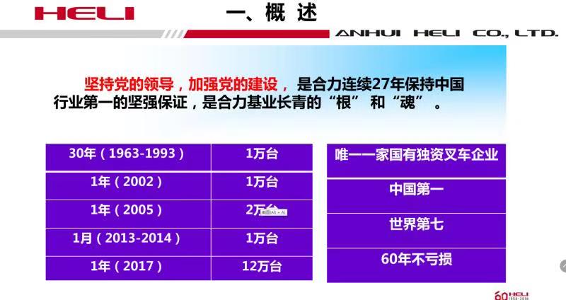 從合力的交流中歸納該企業(yè)的管理特點(diǎn):一是系統(tǒng)性,在戰(zhàn)略管理、國際化經(jīng)營、兩化融合、企業(yè)運(yùn)營、人力資源管理等方面全面開展,特別是精益管理、卓越績效管理方面很有成效。二是持續(xù)性,咬定青山不放松、持之以恒抓管理,近10年對精益管理常抓不懈,連續(xù)多年開展卓越績效、人才隊(duì)伍建設(shè),確保企業(yè)質(zhì)量效益穩(wěn)步提升,取得優(yōu)異成績。三是成效性,合力集團(tuán)主要經(jīng)濟(jì)指標(biāo)經(jīng)連續(xù)27年位居中國叉車行業(yè)第一位,2011年至今始終名列世界八強(qiáng)。