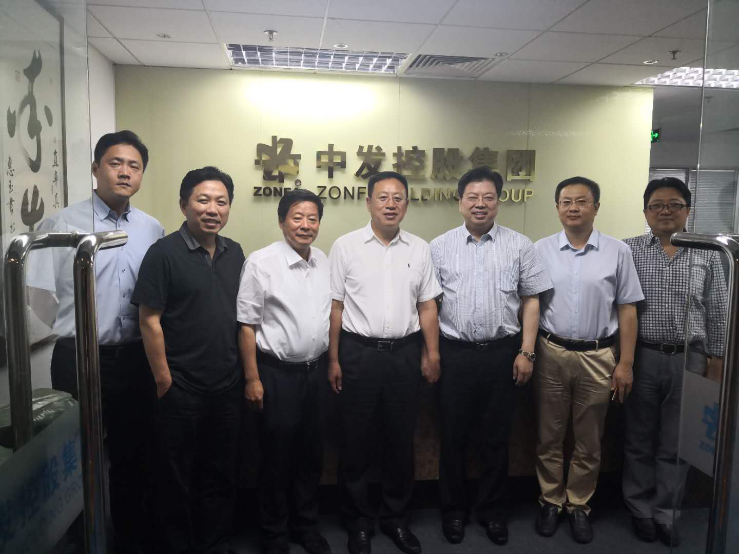 于中赤會(huì)長(中)、楊一平常務(wù)副會(huì)長(左三)、楊征秘書長(右二)與陳鄧華董事長(右三)等中發(fā)集團(tuán)領(lǐng)導(dǎo)合影