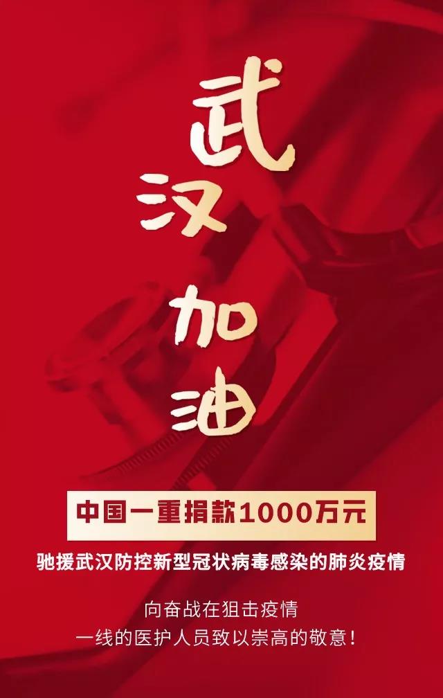疫情侵襲,一重有情。2020年1月30日,中國一重集團(tuán)有限公司通過國務(wù)院國資委,捐贈(zèng)1000萬元現(xiàn)金,用于采購防控新型肺炎疫情的醫(yī)用耗材、防護(hù)用品,以及支援抗擊疫情一線的醫(yī)護(hù)人員,馳援湖北抗擊新型肺炎疫情。同時(shí),中國一重向所有受到疫情影響的人們表示衷心的慰問,向所有奮戰(zhàn)在疫情防控一線的工作人員致以崇高的敬意!