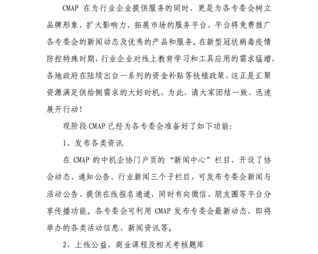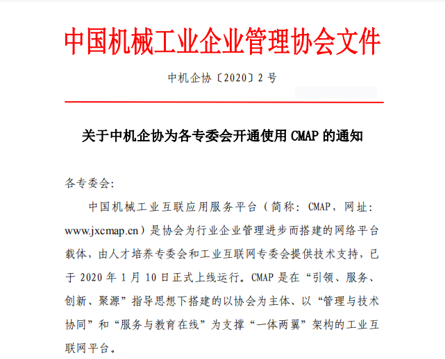 關(guān)于中機(jī)企協(xié)為各專委會(huì)開(kāi)通使用 CMAP 的通知